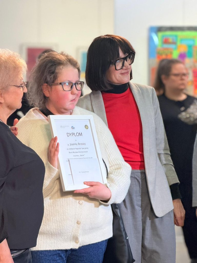 - Grzegorza Kowalskiego z Warsztatu Terapii Zajęciowej w Osinach za pracę zatytułowaną: „Czapla z papierowych snów”