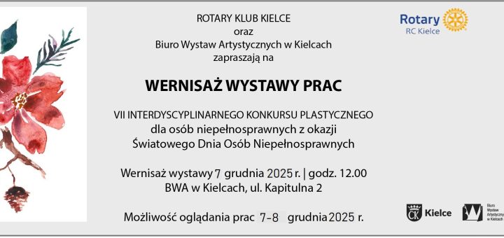 Rotary Club Kielce oraz Biuro Wystaw Artystycznych w Kielcach serdecznie zapraszają do udziału w VIII Interdyscyplinarnym Konkursie Plastycznym dla osób niepełnosprawnych z terenu miasta Kielce, powiatu kieleckiego oraz powiatu opatowskiego z okazji Światowego Dnia...